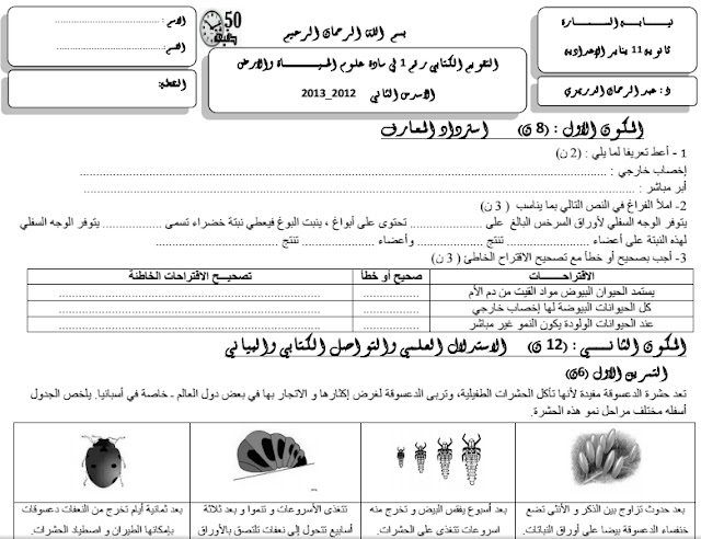 نماذج الفرض الأول الدورة الثانية علوم الحياة و الأرض الثانية إعدادي -نموذج4-