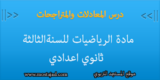 درس في مادة الرياضيات المعادلات والمتراجحات لتلاميذ السنة الثالثة من التعليم الثانوي الإعدادي، ويتضمن درس المعادلات والمتراجحات المحاور التالية: