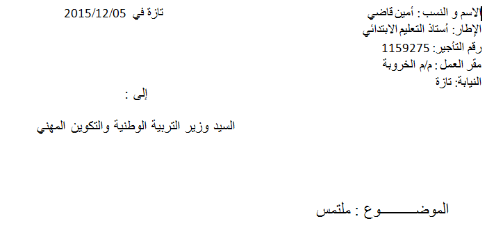 أستاذ من تازة يقدم ملتمس لوزير التربية الوطنية و يتمنى الإستجابة
