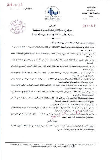 اعلان عن اجراء مباراة التوظيف في درجات مختلفة بادارة مجلس جهة طنجة تطوان الحسيمة