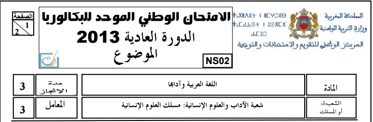 الإمتحان الوطني للثانية باك اللغة العربية 2013 – مع التصحيح