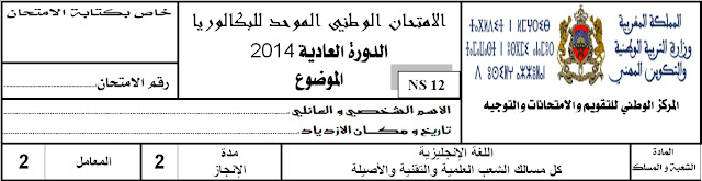 مواضيع الإمتحانات الوطنية لنيل شهادة الباكالوريا في مادة اللغة الإنجليزية مع التصحيح- نموذج 2014-الدورة الإستدراكية كل الشعب العلمية و التقنية و الأصيلة.