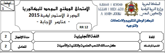 الإمتحان الوطني 2015 مادة اللغة الإنجليزية مع التصحيح الدورة الإستدراكية كل الشعب العلمية و التقنية و الأصيلة .