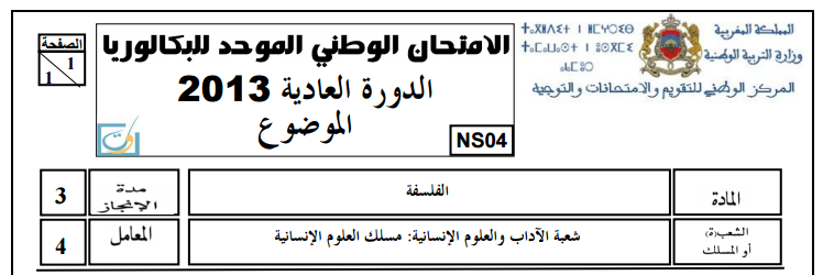 موضوع الامتحان الوطني الموحد للبكالوريا 2013 في مادة الفلسفة- الدورة العادية –