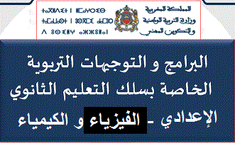 البرامج و التوجيهات التربوية الخاصة بتدريس مادة الفيزياء و الكيمياء بسلك التعليم الثانوي الإعدادي إليكم أيها الأعزاء في مادة الفيزياء و الكيمياء هذا البرامج الخاصة بكم مع متمنياتنا لكم بكل التوفيق والنجاح تحميل التوجيهات التربوية