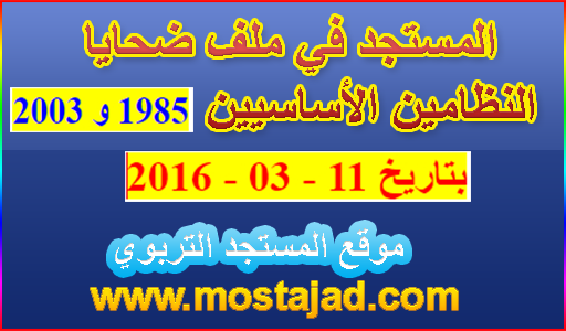 المستجد في ملف ضحايا النظامين الأساسيين 1985 و 2003 بتاريخ 11 – 03 – 2016