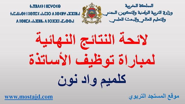 النتائج النهائية لمباراة توظيف الأساتذة موظفي الأكاديمية لجهة كلميم واد نون دورة دجنبر 2018 لتحميل الائحة يمكنك الضغط هنا