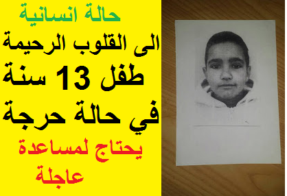 الى القلوب الرحيمة …طفل 13 سنة في حالة حرجة يحتاج لمساعدة عاجلة