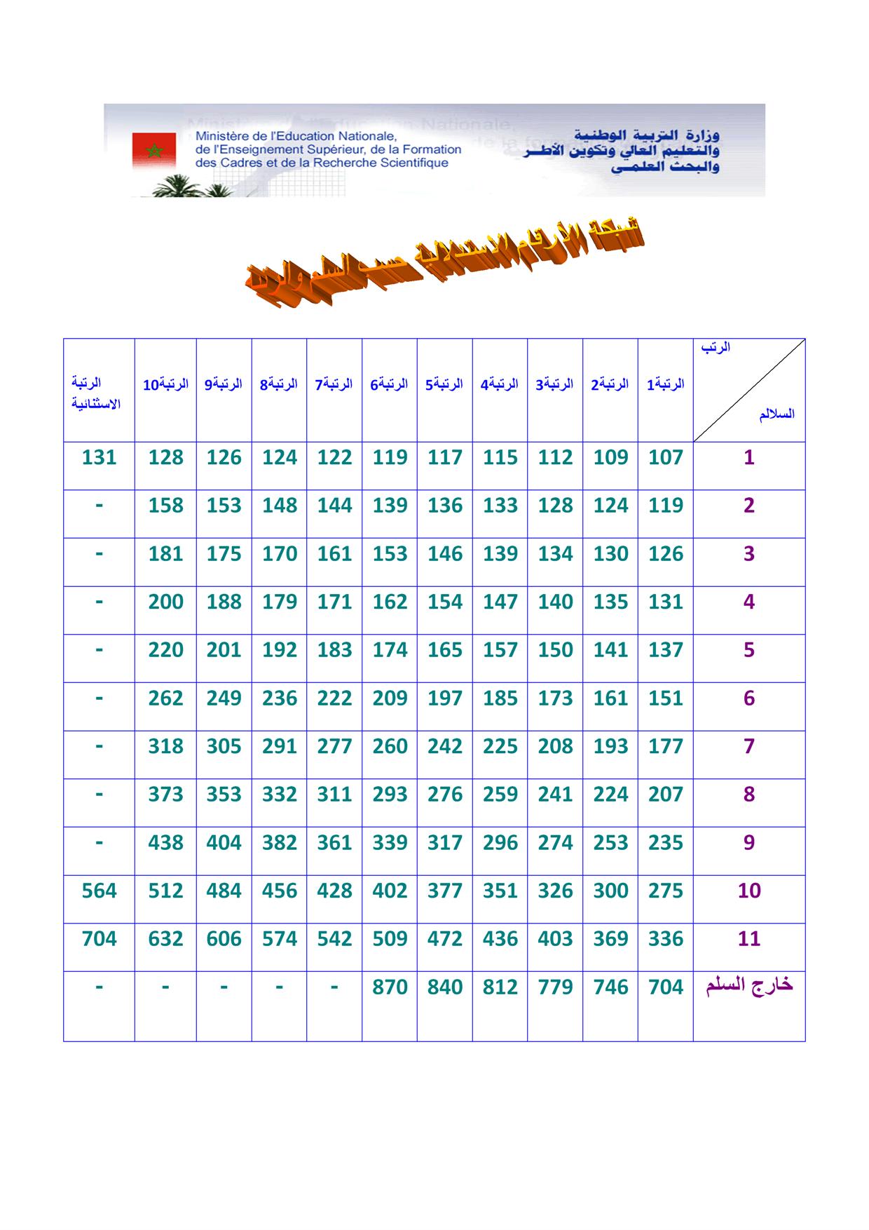 شبكة الأرقام الاستدلالية حسب الرتبة والسلم بالمغرب