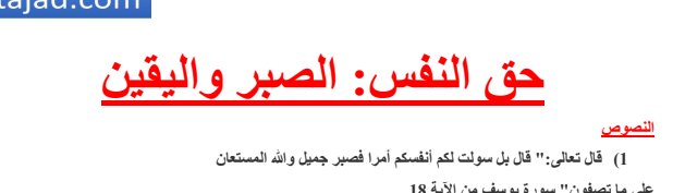 دروس مادة التربية الاسلامية السنة الاولى باكالوريا شعبة العلوم التجريبية درس حق النفس الصبر واليقين Pour Télécharger لتحميل الملف