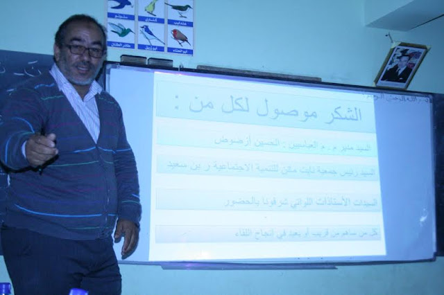 حضر اللقاء التكويني رئيس جمعية نايت ماتن للتنمية الاجتماعية السيد رشيد بن سعيد بوصفه الجهة المشاركة و الداعمة فضلا عن الأساتذة العاملين في الوحدة المدرسية علاوة على السيد أحمد أكشوض عن جمعية الأمل .