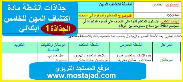 نقدم لكم في هذا الموضوع جذاذات أنشطة مادة اكتشاف المهن للخامس ابتدائي، بشكل غاية في الروعة.