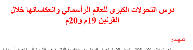 دروس مادة التاريخ الأولى باكالوريا شعبة العلوم الاقتصادية والتدبير درس التحولات الكبرى للعالم الرأسمالي وانعكاساتها خلال القرنين 19م و20م Pour Télécharger لتحميل الملف