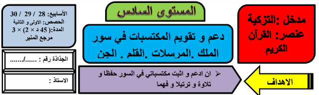 نقدم لكم في هذا الموضوع دعم و تقويم المكتسبات في سور الملك .المرسلات .القلم . الجن مادة التربية الإسلامية للسادس ابتدائي، بشكل غاية في الروعة، يمكنكم التحميل من الرابط أسفله: