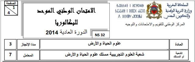 امتحانات وطنية للثانية باكشعبة علوم الحياة و الارض