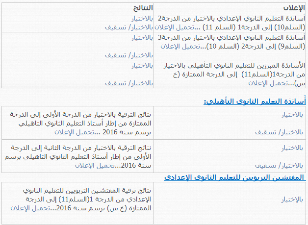 عاجل... نتائج الترقية بالاختيار و التسقيف برسم سنة 2016 بالتوفيق للجميع لا تنسونا بصالح الدعاء لمعاينة النتائج المرجو الضغط على الرابط اسفله: من هنا