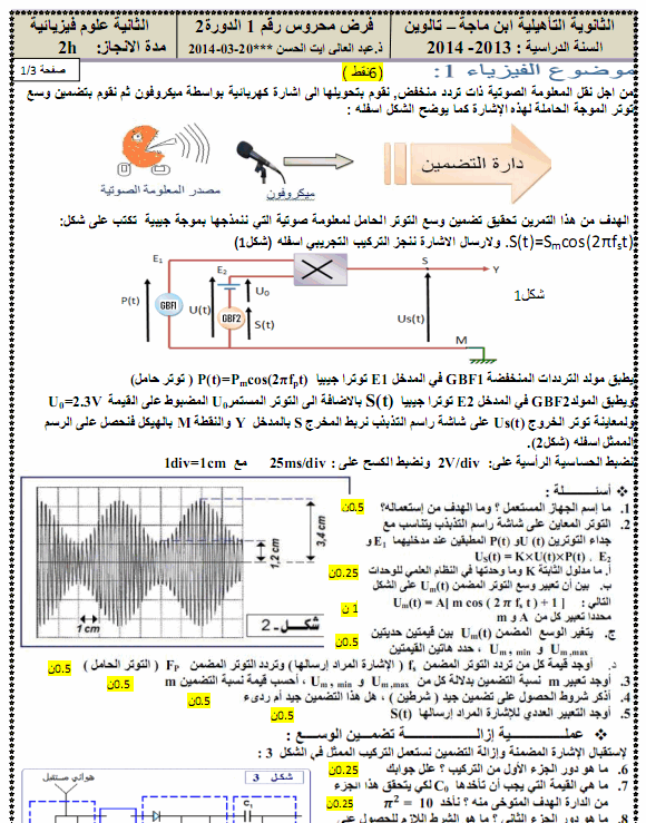 الثانية باك فيزياءفروض 2باكفروض الثانوي