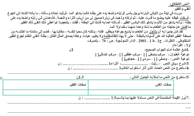 فروض الدورة الأولى (النموذج 4) مادة اللغة العربية الثانية إعدادي