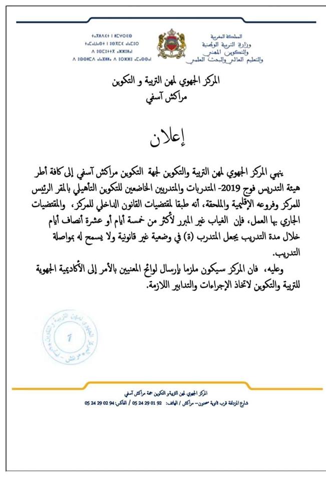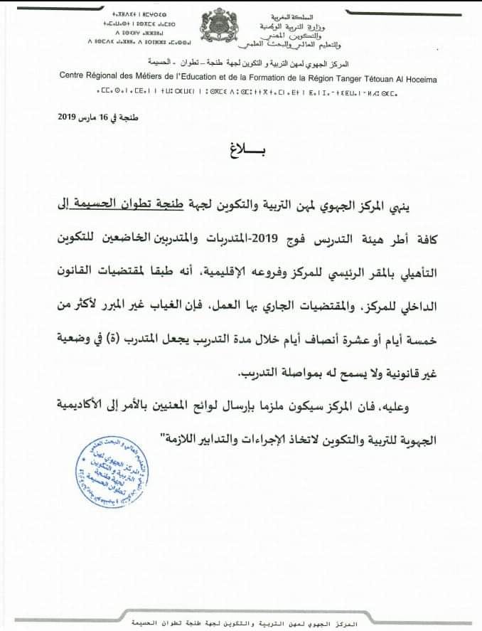 مركز الجهوي للتربية والتكوين يفسخ عقودا مع الغائبين