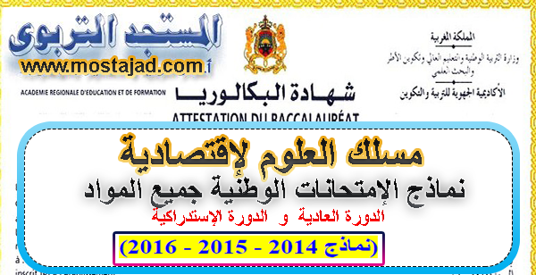 مسلك العلوم الإقتصادية : نماذج الإمتحانات الوطنية جميع المواد الدورة العادية و الدورة الإستدراكية