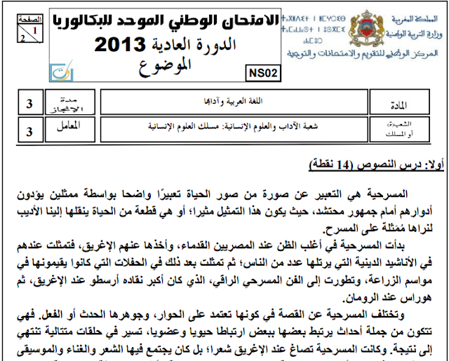 امتحانات وطنيةامتحانات وطنية للثانية باكشعبة العلوم الإنسانية