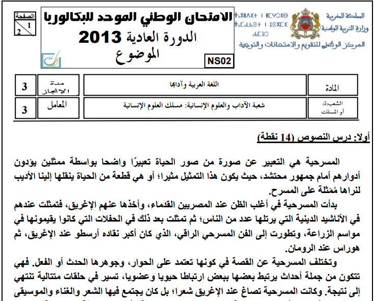 امتحانات وطنيةامتحانات وطنية للثانية باكشعبة العلوم الإنسانية
