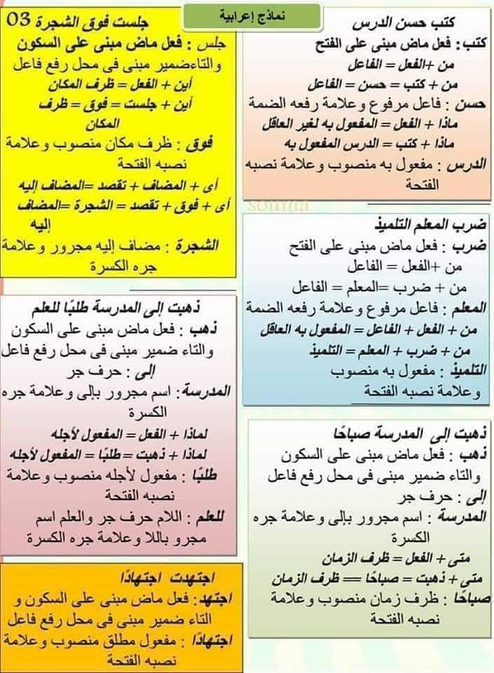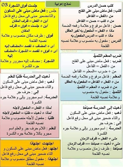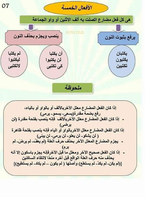 ملخصات دروس اللغة العربية
