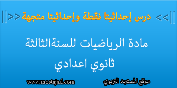 درس في مادة الرياضيات إحداثيتا نقطة وإحداثيتا متجهة لتلاميذ السنة الثالثة من التعليم الثانوي الإعدادي، ويتضمن درس إحداثيتا نقطة وإحداثيتا متجهة المحاور التالية: