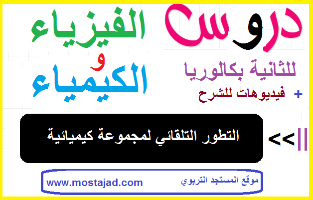 نقدم لكم في هذا الموضوع ملخص درس التطور التلقائي لمجموعة كيميائية- مادة الفيزياء و الكيمياء- للثانية بكالوريا + فيديو للشرح، بشكل غاية في الروعة.