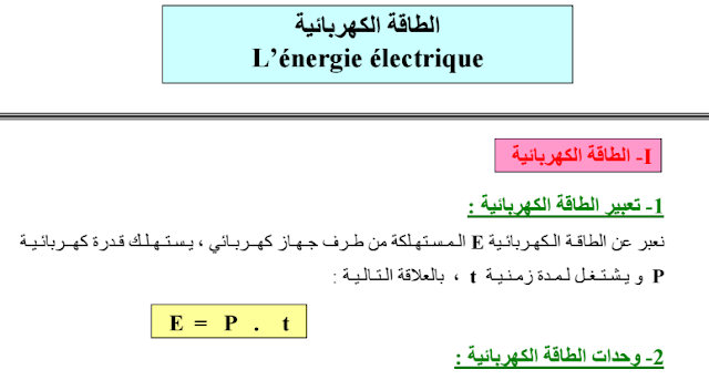 ملخص درس الطاقة الكهربائية – مادة الفيزياء والكيمياء – الثالثة إعدادي + فيديو توضيحي