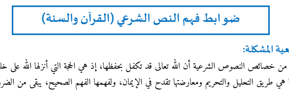 درس ضوابط فهم النص الشرعي (القرآن والسنة)