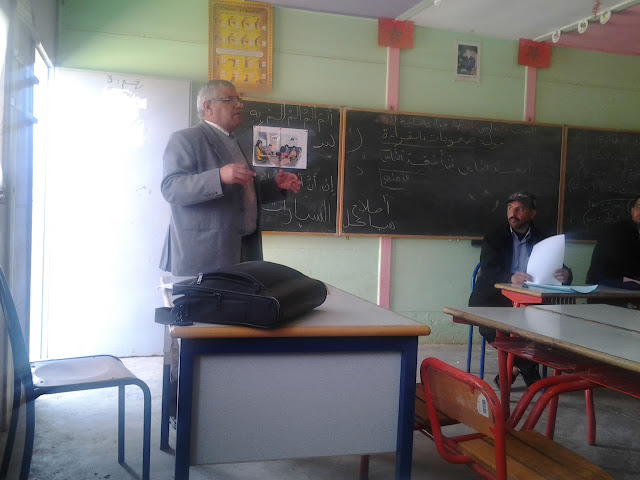 أما فيما يخص العرض النظري الذي أنجزه الأستاذ محمد السعدي فقد استهله بإبراز العوامل والاعتبارات التي دفعته لاختيار موضوع الدرس ( الصعوبات القرائية ) منها اعتبار القراءة ككفاية عرضانية لها امتدادات في باقي المواد الدراسية وأن التعثرات القرائية تنعكس سلبا الفهم والتحصيل الدراسي من جهة و احتلال المغرب لمراتب متأخرة عربيا ودوليا بسبب ضعف الكفايات القرائية من جهة ثانية …وانتقل إلى تحديد مفهوم القراءة كآلية عقلية تعمل على تحويل النسق المكتوب إلى نسق مقروء والمعنى الذهني ، كما حدد أنواع القراءات (الجهرية – الصامتة – السماعية ) وتحديد وظيفة كل نوع ، وبعد تشخيص الصعوبات القرائية التي تعاني منها المدرسة العمومية تم عرض مجموعة من الاقتراحات والحلول لتجاوز التعثرات القرائية ،من جانبه قدم السيد المفتش عبد الكبيركتمان مجموعة من التوجيهات والنصائح لتجاوز الصعوبات القرائية معتبرا أن مصلحة المتعلم فوق كل اعتباركما ذكر الاساتذة بالمسؤوليات الملقاة على عاتقهم من أجل الارتقاء بالمنظومة التعليمية ببلادنا ،و بهدف إشراك الأساتذة الحاضرين للقاء و حتى تتم الاستفادة من مختلف تجاربهم المتعلق بتجاوز الصعوبات القرائية تم فتح باب النقاش .