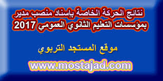 نتائج الحركة الإدارية و الجهوية لإسناد منصب مدير بمؤسسات التعليم الثانوي الاعدادي
