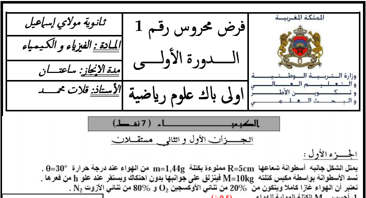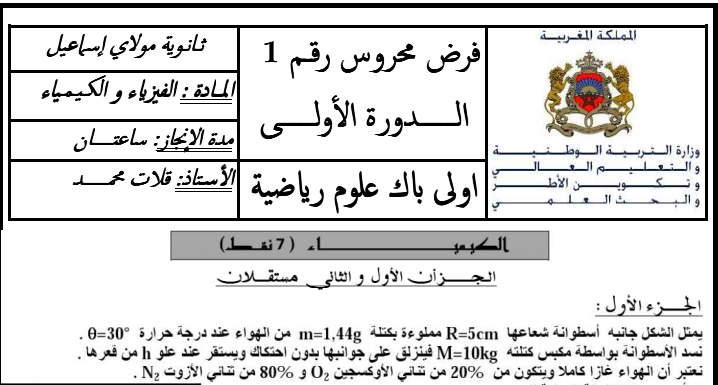 أحدث فرض كتابي رقم 1 الدورة الاولى في مادة الفيزياء الاولى باك علوم رياضية -نموذج 3-