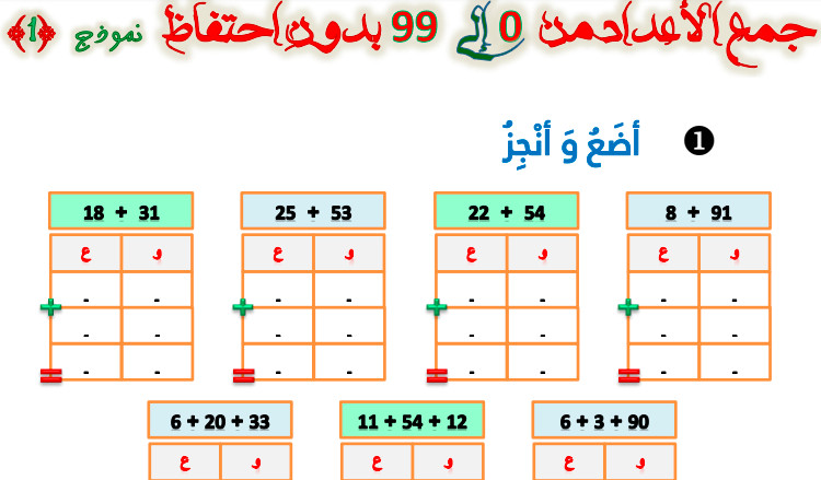 أنشطة جمع الأعداد المستوى الثاني ابتدائي