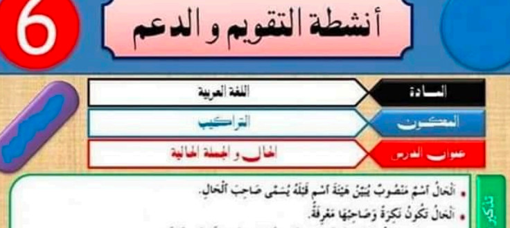 أنشطة داعمة في اللغة العربية المستوى السادس ابتدائي