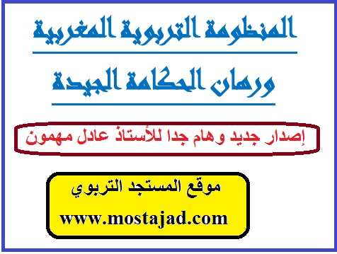 إصدار جديد وهام جدا للأستاذ عادل مهمون : المنظومة التربوية المغربية ورهان الحكامة الجيدة شكرا لكل من ساهم في العمل و الانجاز شكر خاص للأستاذ رضوان الرمتي و للأستاذ عادل مهمون أترككم مع الكتاب المميز : لا تنسونا بصالح الدعاء للتحميل المرجو الضغط على الرابط اسفله: هنا