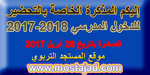 المذكرة عدد 17-060 الصادرة بتاريخ 28 أبريل 2017 الخاصة بالتحضير للدخول المدرسي 2018-2017 ||>> المذكرة : لتحميل المذكرة المرجو الضغط اسفله : من هنا