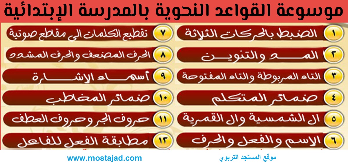 إليكم جميع القواعد النحوية بالمدرسة الإبتدائية