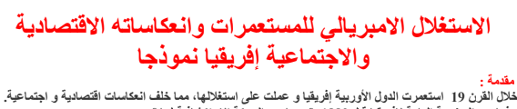 دروس مادة التاريخ أولى باكالوريا شعبة اداب وعلوم انسانية الاستغلال الامبريالي للمستعمرات وانعكاساته الاقتصادية والاجتماعية إفريقيا نمودجا Pour Télécharger لتحميل الملف