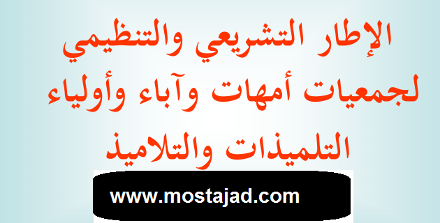 الاطار الشريعي والتنظيمي لجمعيات الآباء والأمهات.pdf >> تجميعية مواضيع التشريع التربوي ||>> التفاصيل: بالتوفيق للجميع لا تنسونا بصالح الدعاء رابط للتحميل Downlaod الاطار الشريعي والتنظيمي لجمعيات الآباء والأمهات.pdf