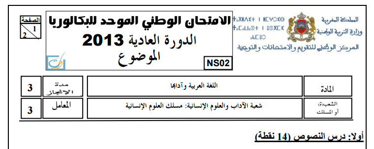 الامتحان الوطني الموحد للثانية باك 2013 اللغة العربية مع التصحيح