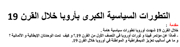 دروس مادة التاريخ أولى باكالوريا شعبة اداب وعلوم انسانية التطورات السياسية الكبرى بأوربا خلال القرن 19 Pour Télécharger لتحميل الملف