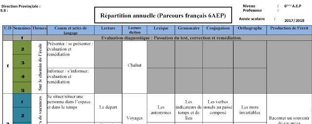 التوزيع السنوي الجديد للفرنسية للمستوى السادس ابتدائي