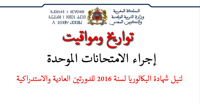 تواريخ ومواقيت الامتحان الوطني الموحد لنيل شهادة البكالوريا 2016 للدورتين العادية والاستدراكية