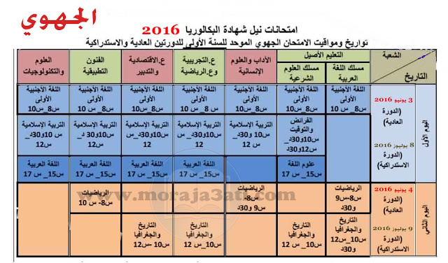 الدورة العادية : تجرى اختبارات هذه الدورة أيام 7 و 8 و 9 يونيو 2016 بالنسة لجميع الشعب