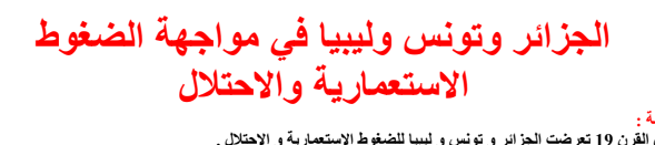 دروس مادة التاريخ أولى باكالوريا شعبة اداب وعلوم انسانية الجزائر وتونس وليبيا في مواجهة الضغوط الاستعمارية والاحتلال Pour Télécharger لتحميل الملف