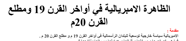 دروس مادة التاريخ أولى باكالوريا شعبة اداب وعلوم انسانية الظاهرة الامبريالية في أواخر القرن 19 ومطلع القرن 20م Pour Télécharger لتحميل الملف