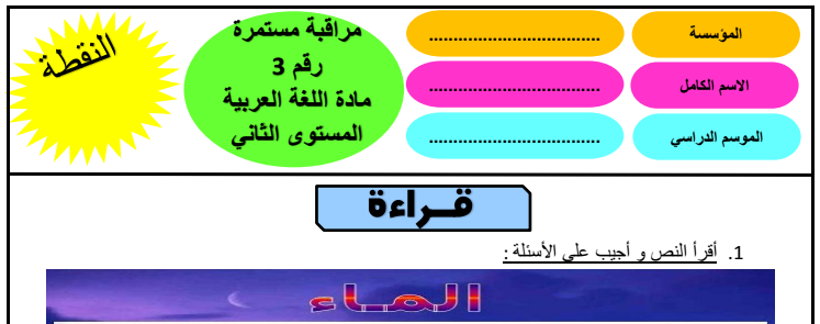 ||>> تجميعية فروض اللغة العربية المستوى الخامس