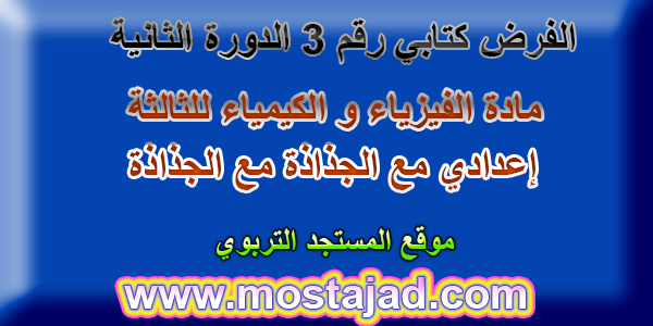 الفرض كتابي رقم 3 الدورة الثانية مادة الفيزياء و الكيمياء للثالثة إعدادي مع الجذاذة مع الجذاذة